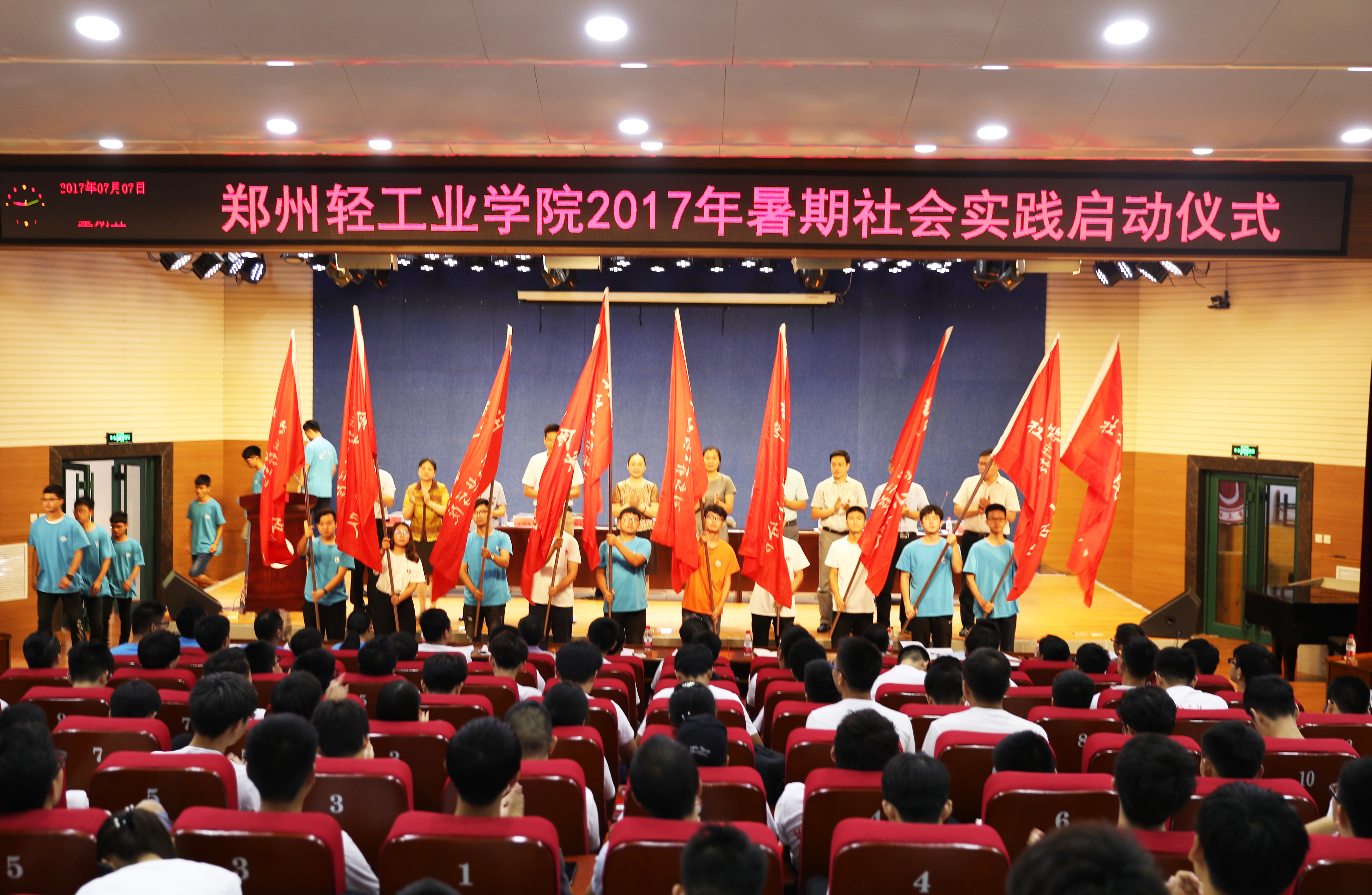 校团委书记葛勋宣读了我校《关于组织开展2017年郑州轻工业学院大学生暑期社会实践活动的通知》。马克思主义学院聂海杰老师作为指导教师代表发言,材料与化学工程学院周云峰、数学与信息科学学院王长山作为学生代表发言。之后,马英副书记和与会职能部门负责人一起为我校2017年大学生暑期社会实践重点团队授旗。