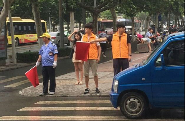 同学们协助协管指挥交通