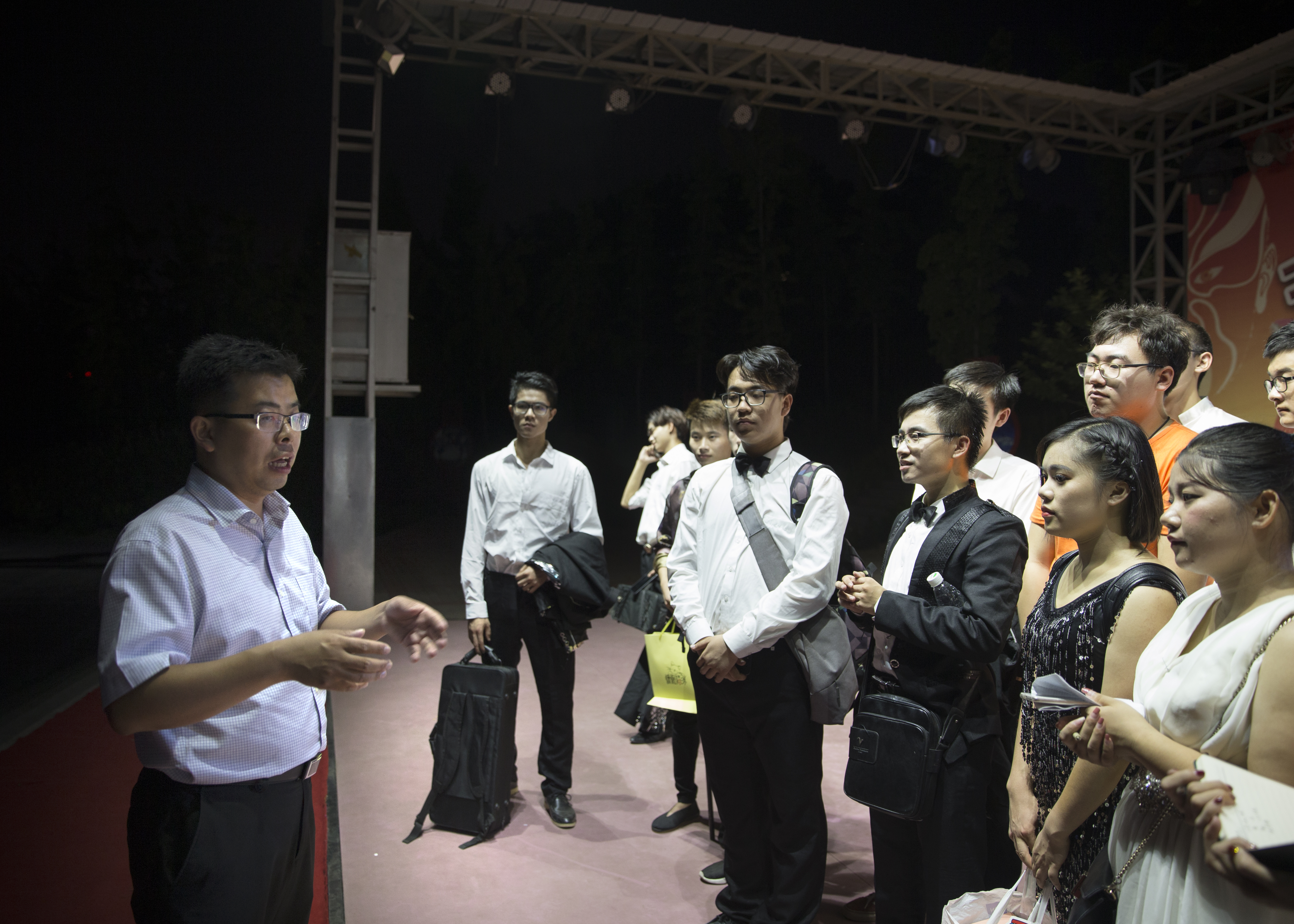 7月11日早晨,宣讲团成员乘坐大巴车前往濮阳。到达濮阳之后,队员们开始进行化妆、卸车、彩排,宣讲团全体成员马上进入了紧张的准备状态。