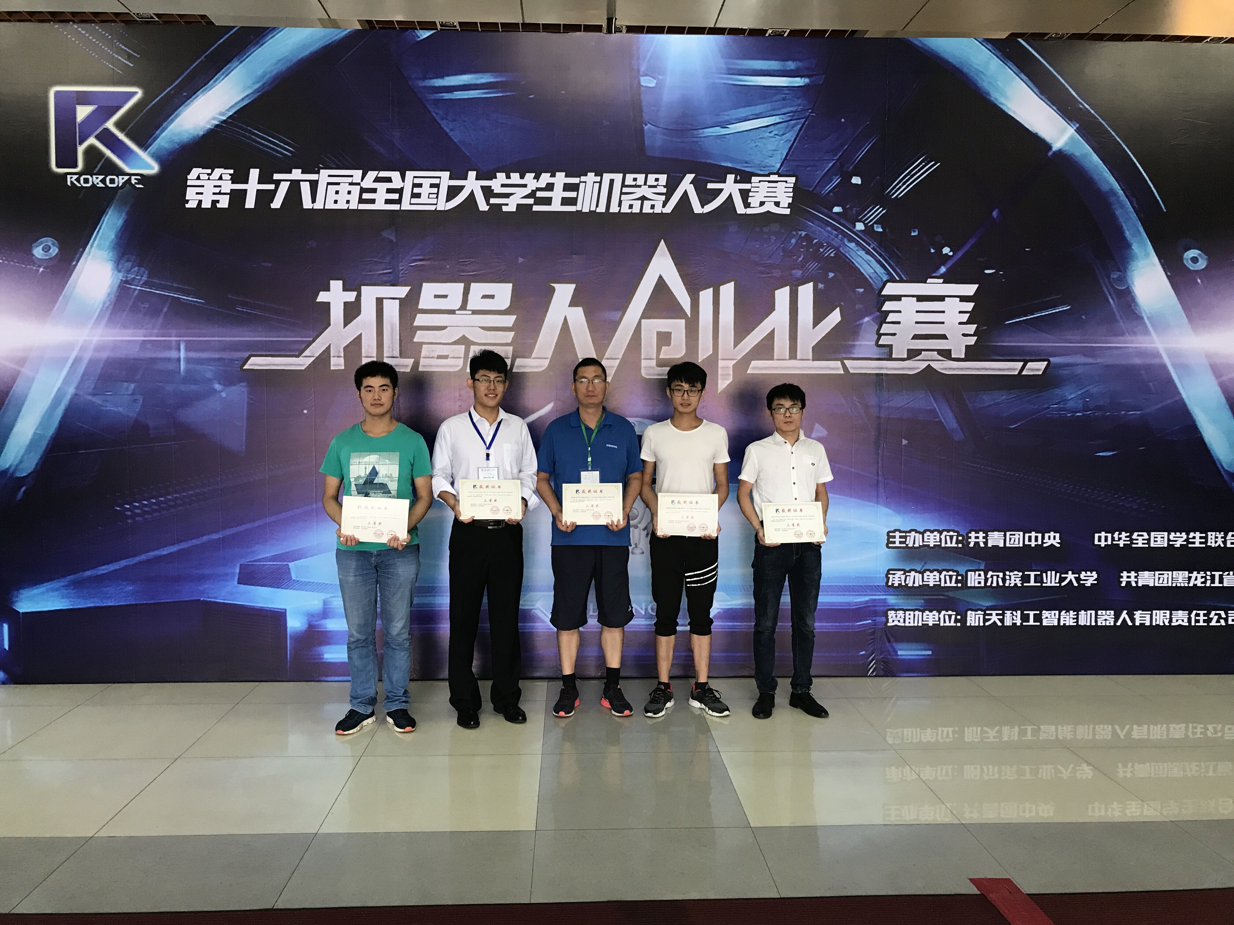7月25-28日,第十六届全国大学生机器人大赛创业赛决赛在哈尔滨工业大学举行,我校本科生团队与来自北京航空航天大学、浙江大学,哈尔滨工业大学,郑州大学等50余所高校的团队同台竞技,获得“全国三等奖”。