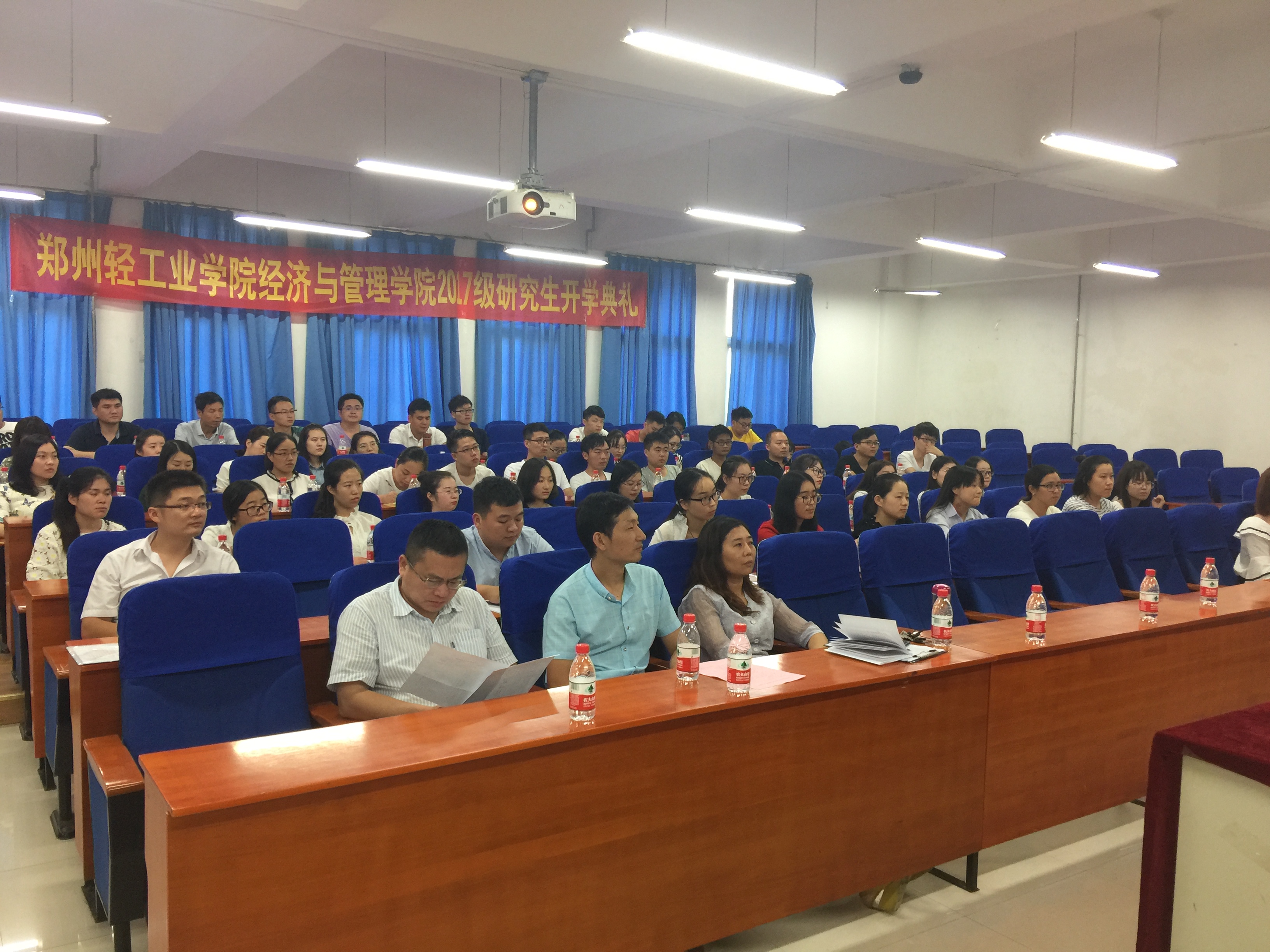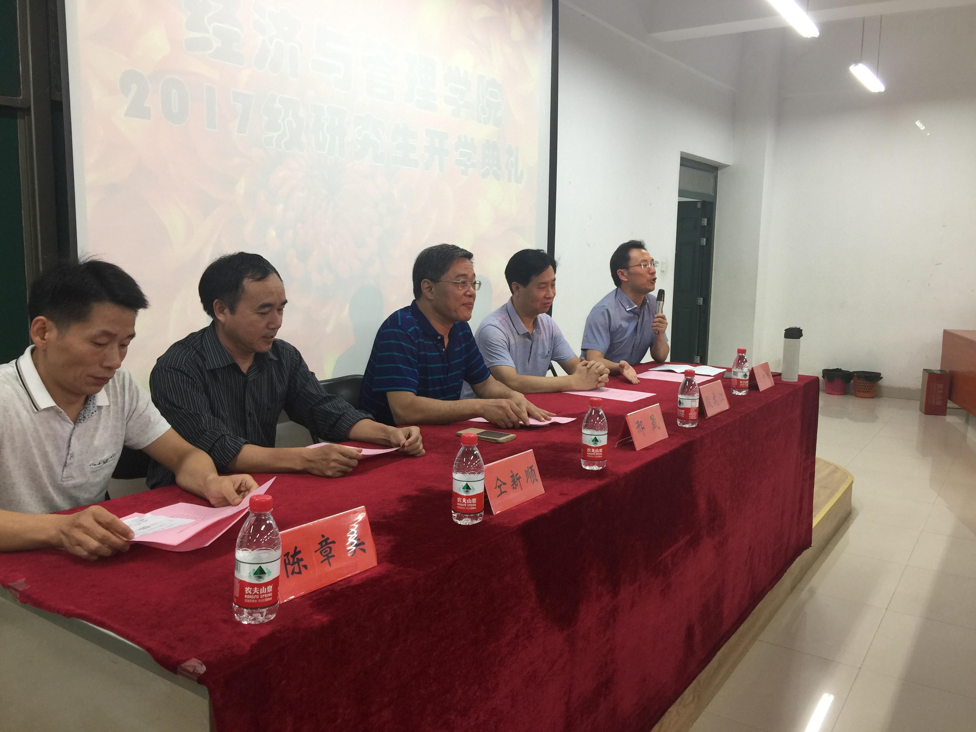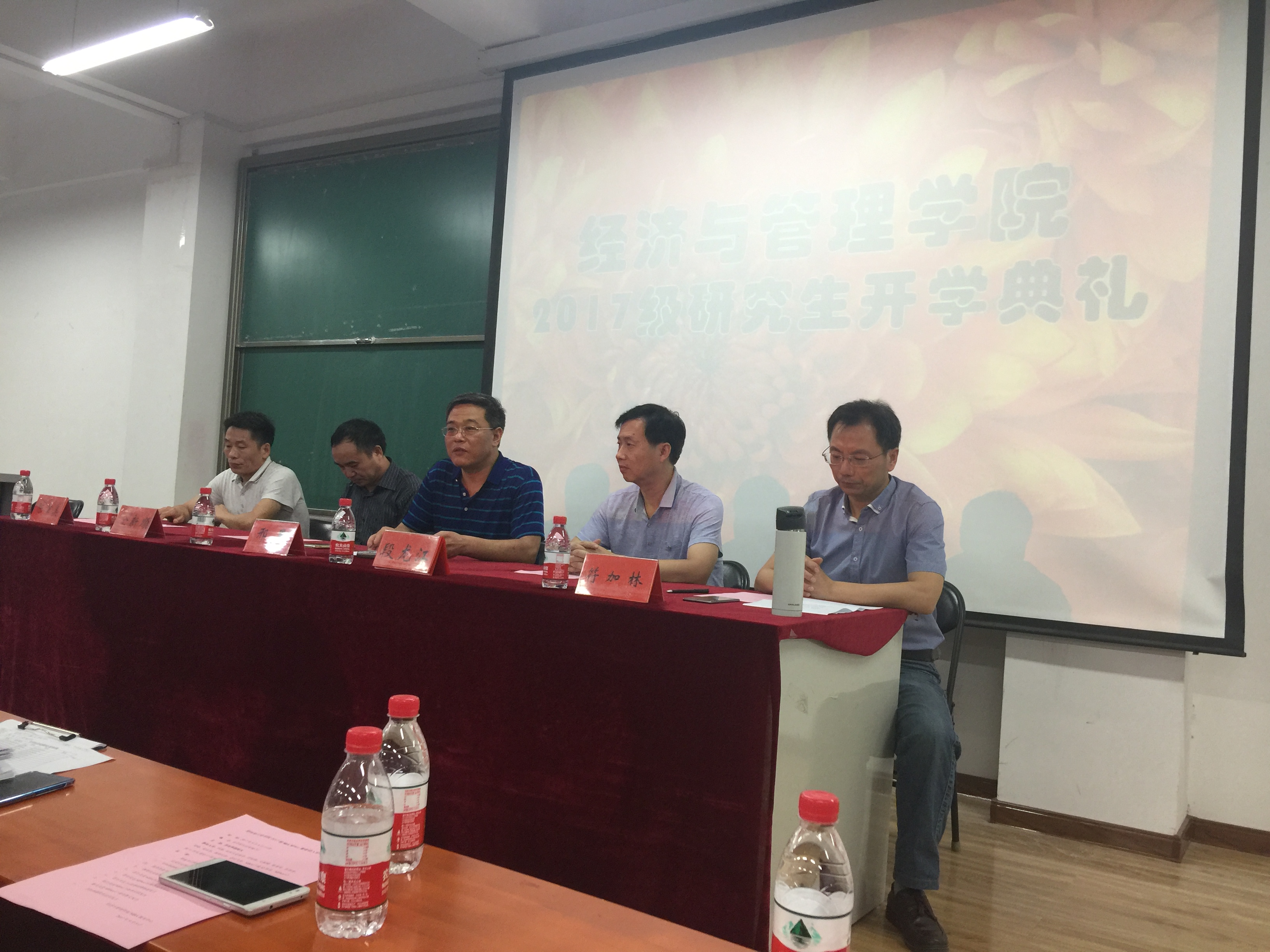 2017年9月8日下午,经济与管理学院2017级研究生开学典礼在经管楼211教室隆重举行,院党总支书记邢晟教授、研究生处段龙江副处长,符加林副院长、仝新顺副院长、陈章美副书记、教师代表张省老师、MBA和MPAcc项目中心主任彭青秀博士、以及新老学员等60余人出席典礼。典礼由副院长符加林主持。
