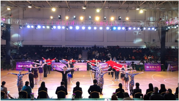 16日进行团体比赛。在团体舞组比赛中,我校12名选手以一曲中国风的拉丁伦巴舞蹈征服了在场所有评委,获得了高校团体竞赛组冠军;在高校表演舞组比赛中,我校选手队将街舞元素融入到国标舞中,赢得了全场观众的热烈欢呼,以最高分获得冠军。