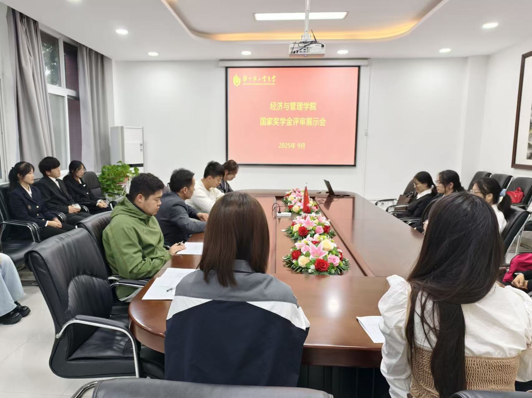 为充分发挥先进榜样典型的示范引领作用,展现我院学生“勤奋向上、求知笃行、自强拼搏、奋发有为”的精神风貌,经济与管理学院在经管楼219室举行了2025年度国家奖学金评审展示会。 学院党委副书记陈章美、专职辅导员、部分学生代表参加了本次评审展示会。