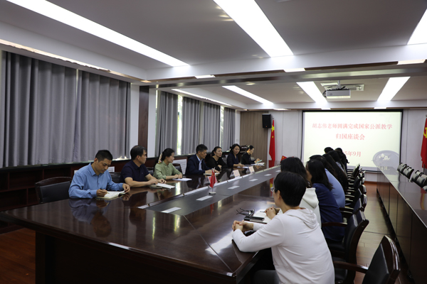 9月24日下午,附属学校在第一会议室召开座谈会。党委教师工作部 人事处(教师发展中心)主任万广军、国际合作与交流处副处长韩芳、外国语学院汉语国际教育系主任海常慧受邀参加。附属学校领导班子、科级干部及英语组教师欢迎胡老师归国回家。胡老师回顾了自己在伊拉克任教情况,感谢学校对他的支持和帮助。座谈中韩芳讲到,胡老师的课堂从不限于萨拉赫丁大学,还拓展到苏莱曼尼亚大学、当地中小学、中资企业甚至街区居民,点燃了当地学习中文和中国文化的热潮,希望胡老师能继续助力学校留学生教育教学及管理工作。海常慧感谢胡老师在汉语国际教育学科建设中的高效帮助,并转达专业学生对胡老师讲座和课堂的热切期待。参会老师深情回顾胡老师在校期间对大家的帮助和指导,纷纷表示要学习他迎难而上、无私奉献的崇高精神,扎根三尺讲台,关爱每一个学生,为学生成长成才保驾领航。