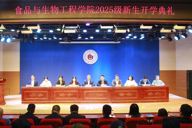 9月26日下午,食品与生物工程学院2025级新生开学典礼在东风校区教一楼107演讲厅隆重举行。学院党政领导、各系(实验中心)主任、首届企业家辅导员、新生班主任、全体辅导员老师和2025级新生参加了典礼。典礼由学院党委副书记李英梅主持。