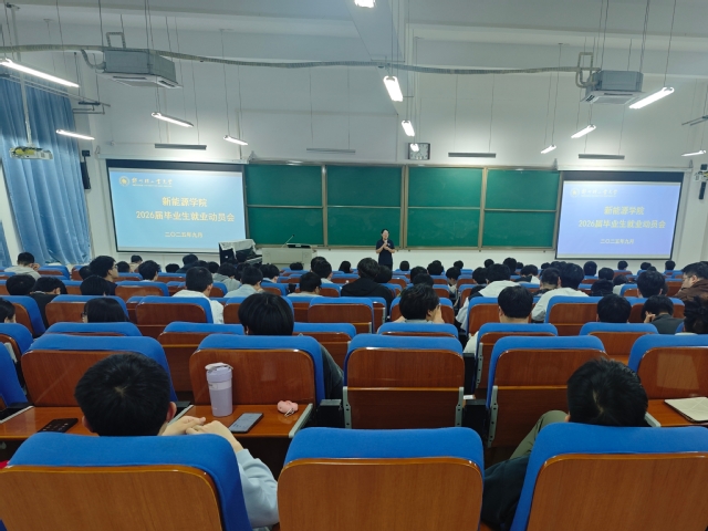 9月28日下午,新能源学院在双创楼100教室召开2026届毕业生就业动员会。学院党委副书记李辉、毕业班辅导员朱妍、就业专职辅导员盛存昊,2022级全体本科生参加了会议。