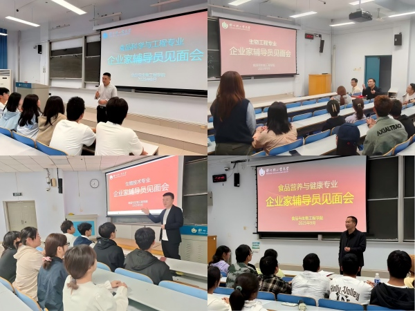 聘任仪式结束后,在办公楼216会议室召开了首届企业家辅导员座谈会。张阳简要介绍了《食品与生物工程学院企业家辅导员工作实施方案》,并对企业家担任辅导员的育人情怀表示了感谢和赞扬。张华院长对学院学科建设、科研平台优势及人才培养目标进行了详细介绍。企业家辅导员们分享了食品、生物领域的前沿动态,剖析了当下企业对专业人才的要求,并就“如何提升岗位适应能力”“怎样优化专业实践教学”等问题提出了建设性意见。学生代表围绕职业规划困惑、实习实践机会获取、专业技能提升路径等话题积极提问,与企业家展开深度交流,现场互动频繁、干货满满。与会同学纷纷表示,学院这一举措,让他们非常惊讶和兴奋,一名同学说“这感觉就像是...我们还在新手村做任务,学院就直接给我们请来了一群满级还带着神级装备的大佬来当队友!”