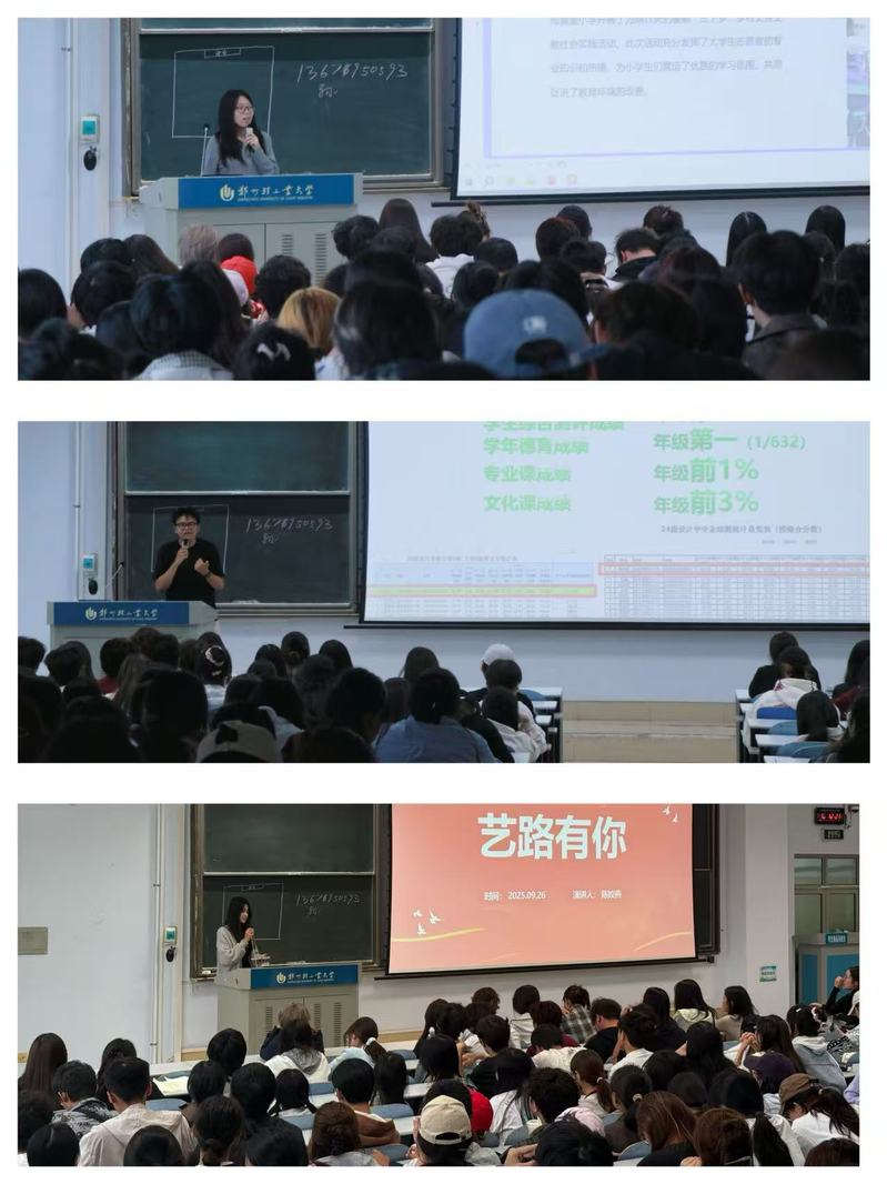 为助新生适应大学节奏、明确专业方向,艺术设计学院于9月27日上午在教三楼302教室举办优秀学生经验分享会。本次活动由新生辅导员孔祥兰主持,蓝巧红、段传诚、陈姣燕三位优秀学子担任分享嘉宾,2025 级全体新生参与。