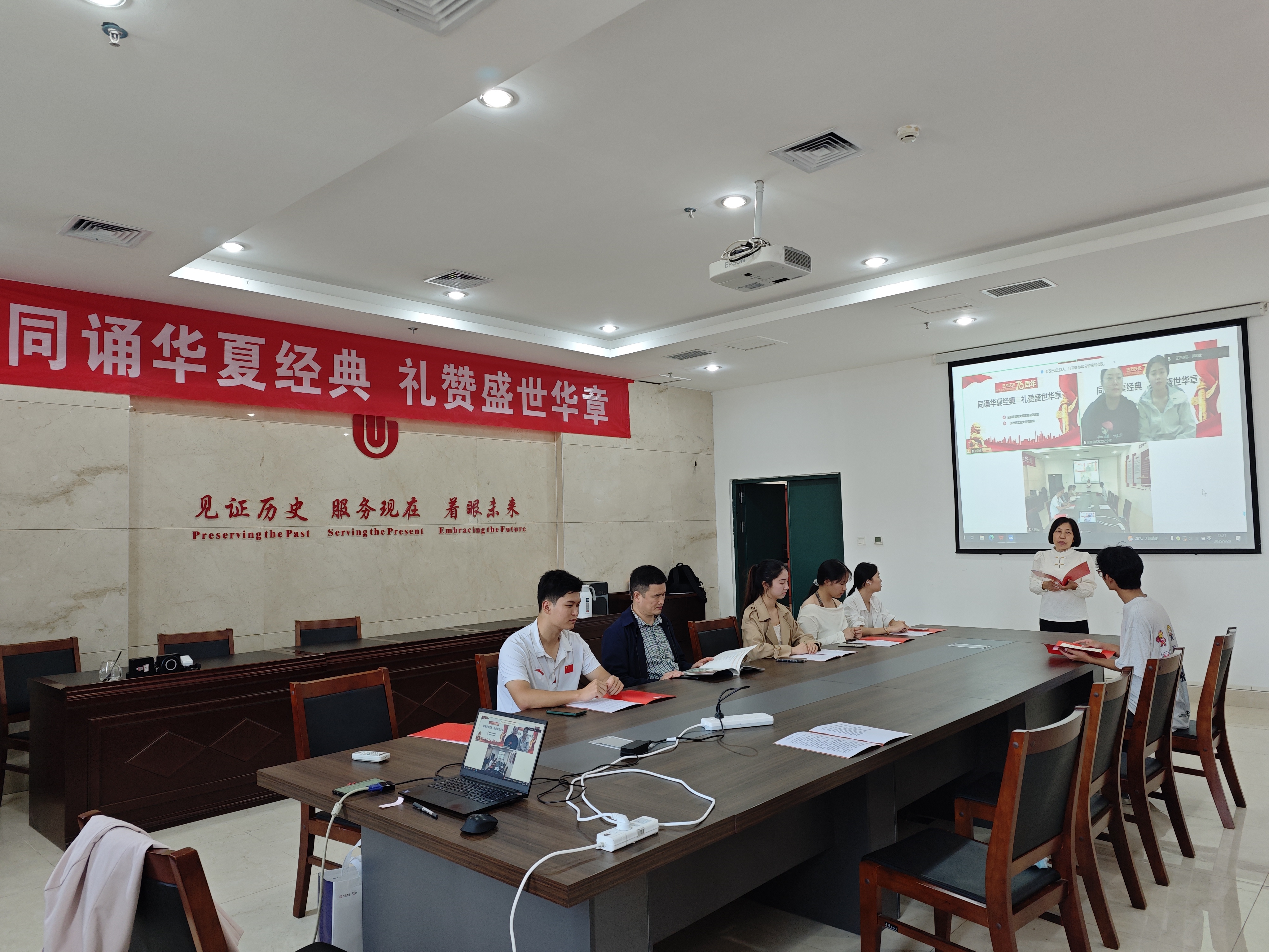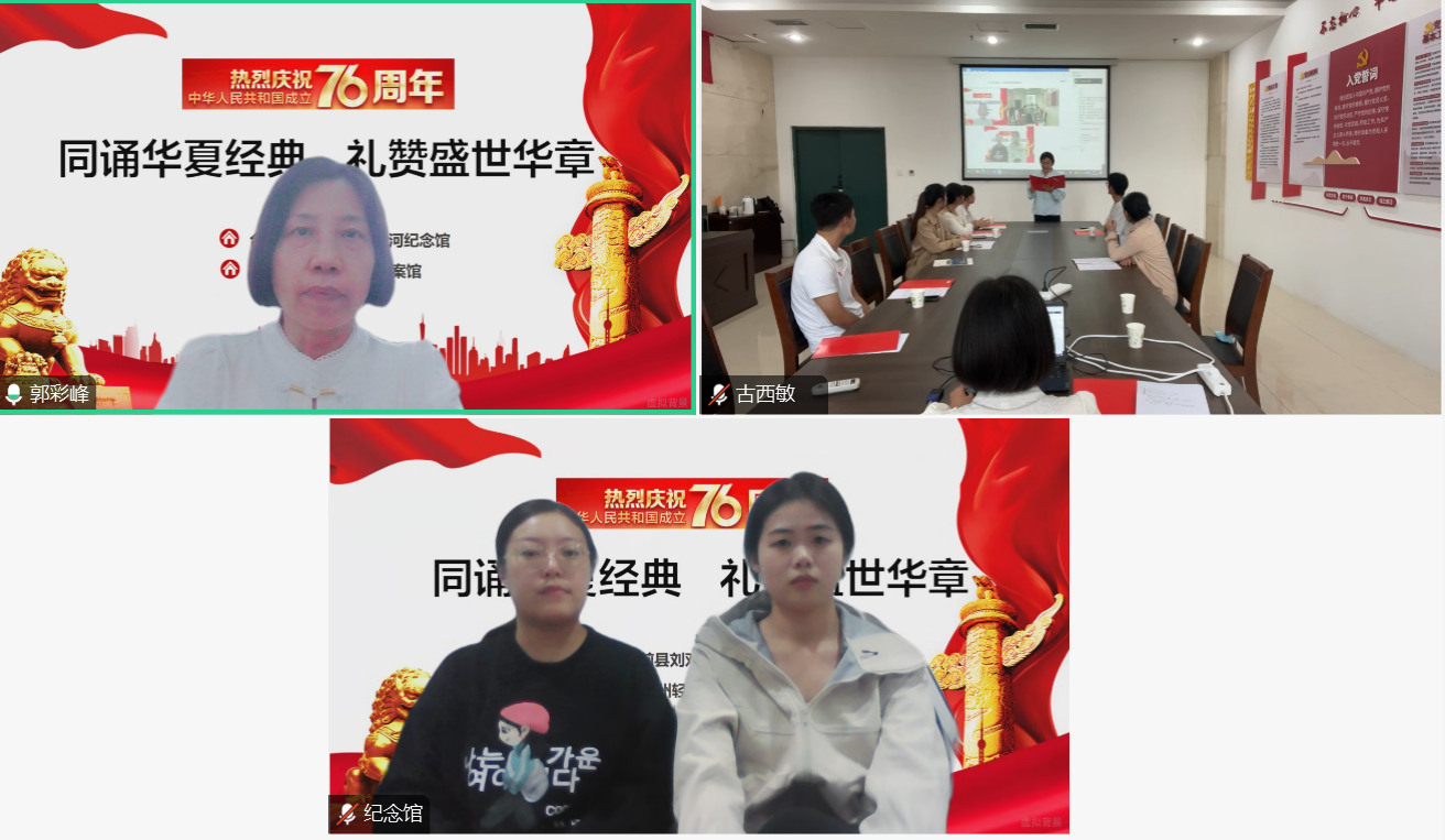 最后,档案馆老师们共同合诵《有一首歌》,让红色旋律在云端回荡,也让处于黄河两岸的两馆人员的情谊在经典诵读中愈发浓厚。