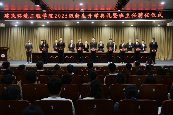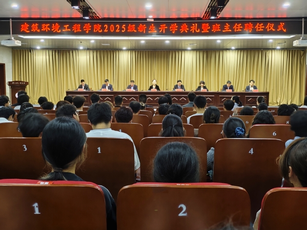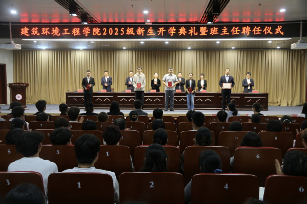 9月29日,建筑环境工程学院在科学校区图书馆报告厅举行2025级新生开学典礼暨班主任聘任仪式。建筑环境工程学院党委书记段莹、院长杨存祥、副书记彭东来、副院长曹祥红、副院长李森、教师代表及全体辅导员出席开学典礼。典礼由党委副书记彭东来主持。