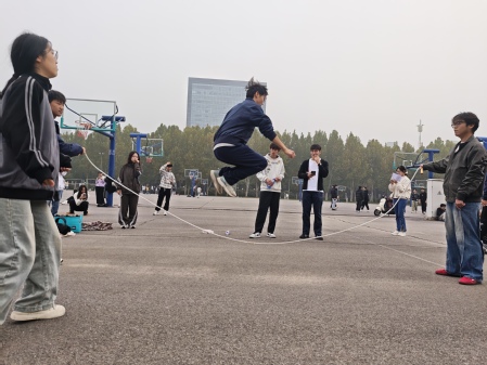 跳大绳比赛同样精彩纷呈。长绳如弧,划空而过,参赛同学们精神饱满、列队整齐,目光紧随绳影起伏。摇绳者节奏稳健,绳体击地声声清脆;跳绳者身轻如燕,跃动间尽显灵动与默契。队员们衔接流畅如行云流水,每一次起落都凝聚着团队的配合与信任。活动现场欢声笑语不断,汗水在阳光下闪烁,展现出青春的蓬勃朝气与协作精神。最终,安全工程25-01班摘得该项目冠军,建筑电气与智能化25-02班获得亚军,安全工程25-02班位列季军。
