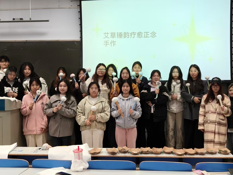 为丰富社区文化生活,帮助同学们舒缓学业压力、提升情绪管理能力,11月21日下午,秋实苑社区在教三楼111教室成功举办了“艾草锤韵,疗愈身心”手工创作活动。本次活动将传统草本文化与现代心理疗愈理念相融合,吸引了35名社区学生参与,大家在沉浸式手作中寻觅内心宁静。