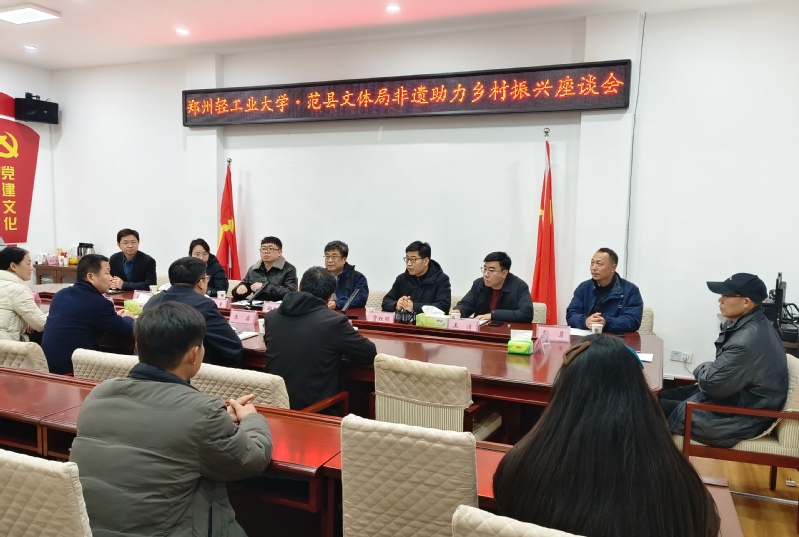 活动首日,学院与范县文体局就“非遗助力乡村振兴”主题举行座谈。范县县委组织部部务委员王岩、文化广电旅游体育局党组副书记、副局长王世广出席座谈会。双方围绕范县非物质文化遗产的保护、活化与创新应用进行了深入交流,并就未来合作方向与具体举措达成初步共识。座谈会上,学院分别为杨集乡和龙王庄镇举行了“艺术设计学院乡村振兴实践基地”授牌仪式,标志着校地合作进入常态化、实质化推进阶段。
