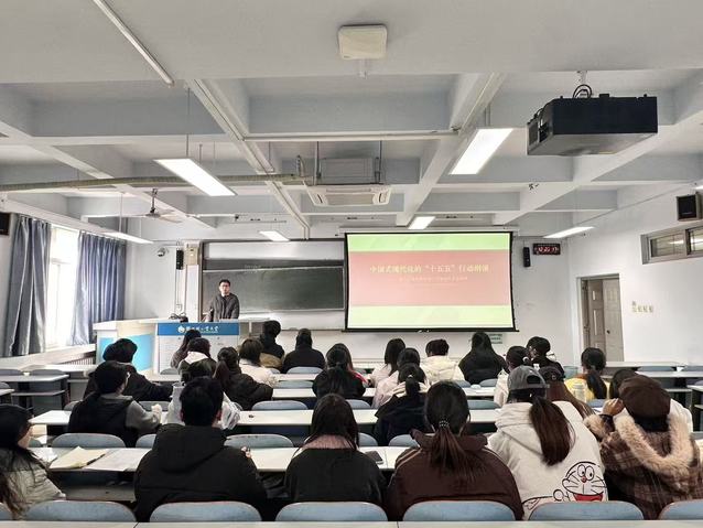 课程中,段老师围绕党的二十届四中全会基本情况、“十四五”时期我国发展取得的重大成就、“十五五”时期经济社会发展的重大意义、党中央关于国内外形势的基本判断、“十五五”时期经济社会发展的指导思想、重大原则、主要目标、战略任务和重大举措、根本保证等方面进行深入解读和阐释,结合科技创新、产业升级、乡村振兴、文化自信等具体领域,阐释了国家发展全局中的青年责任与现实路径,鼓励学员立足专业、胸怀大局,将个人成长融入国家发展大局。