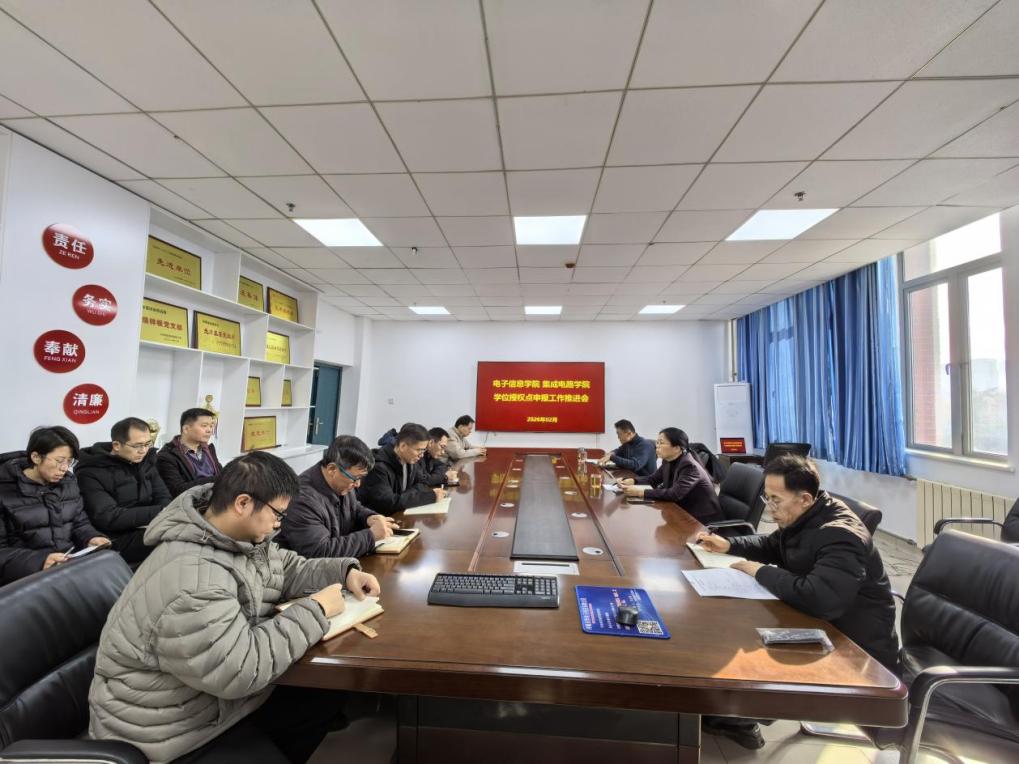2026年2月2日,电子信息学院在四教楼310会议室召开了学位授权点申报工作推进会。院长姜利英、副院长刘德伟、学位点工作负责人张志峰及相关骨干教师参加了会议。