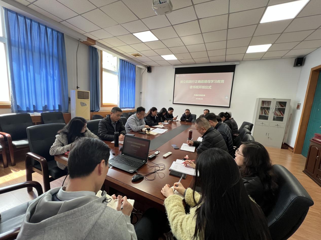 3月25日—27日,外国语学院党委举办树立和践行正确政绩观学习教育专题读书班,深入学习领会习近平总书记关于树立和践行正确政绩观的重要论述,引导广大党员领导干部以正确政绩观引领推动学院工作高质量发展。学院领导班子成员、各党支部书记及科级干部参加,会议由学院党委书记于庆洋主持。