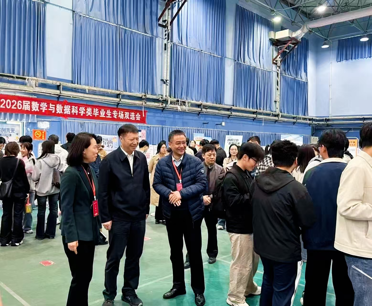 4月9日上午,学校2026届数学与数据科学类毕业生专场双选会在东风校区体育馆顺利举行。本次双选会由学校就业创业指导中心主办,数学与信息科学学院组织承办。校党委副书记杨新宇到场调研,与用人单位和毕业生深入交流,相关职能部门及数学与信息科学学院负责同志陪同。