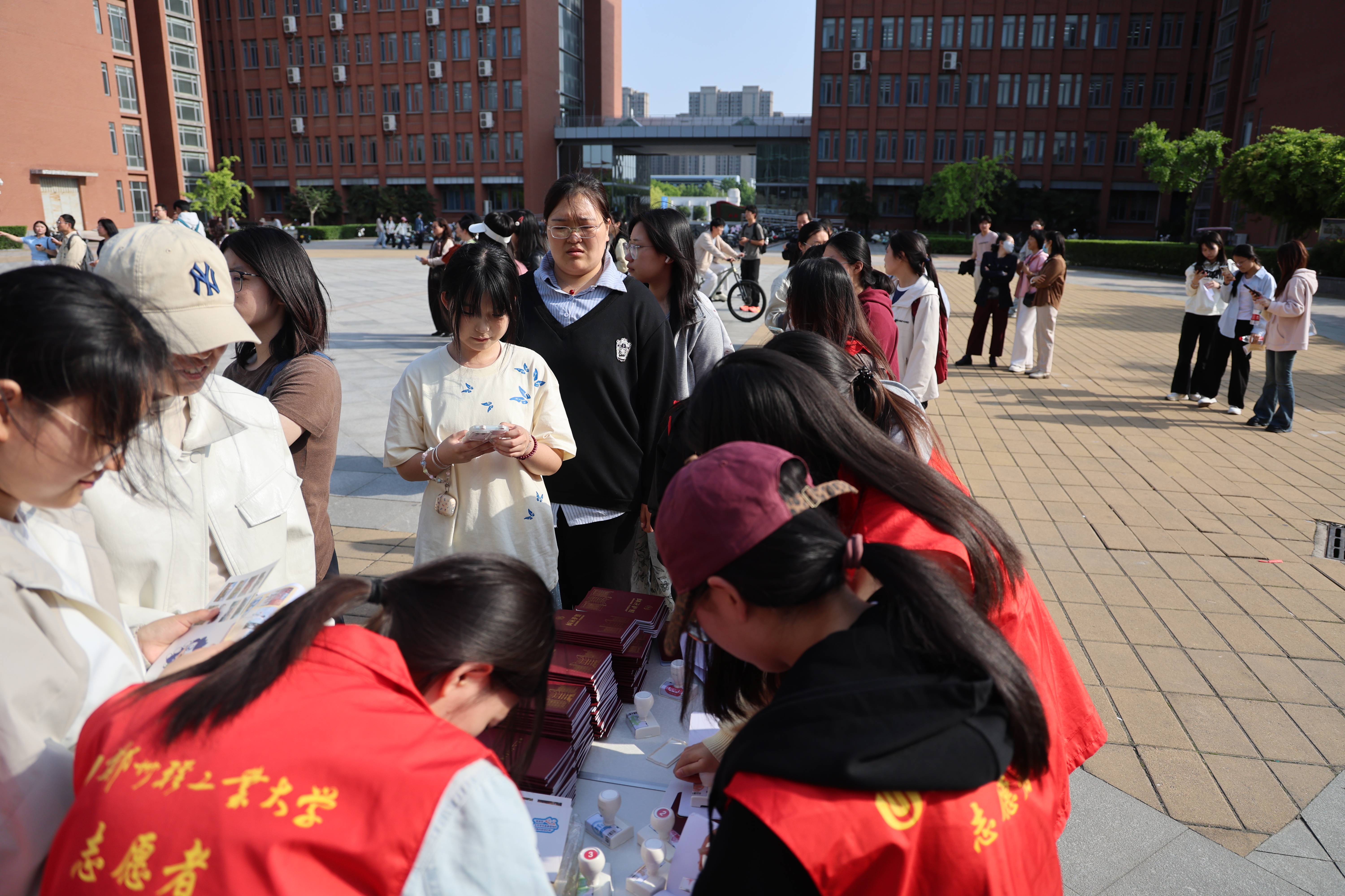 阅读护照打卡”趣味活动也吸引来了很多同学,志愿者组织大家有序排队、给每一位同学分发专属阅读护照并盖上印章,这些忙碌认真的身影,伴随着印章的咔嚓声,构成了活动现场一道靓丽的风景!
