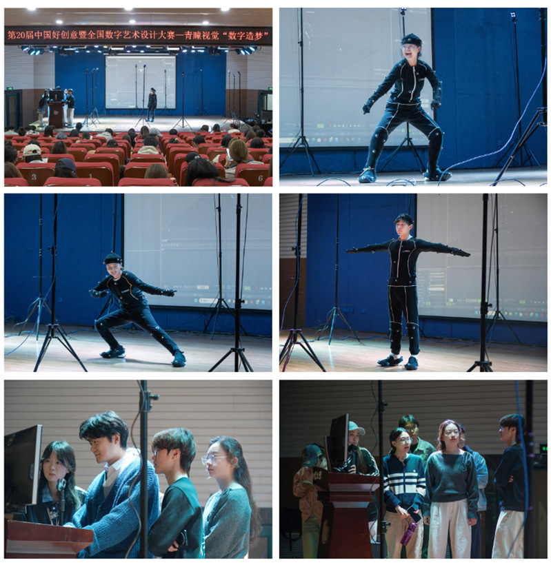 在赛前指导环节,青瞳视觉联合行业资深专家围绕光学动捕技术原理、实时数字人驱动流程以及基于动捕数据的离线动画创作等内容进行了详细讲解,并结合优秀案例梳理了从数据采集到成片输出的技术路径。在现场实训环节,青瞳视觉技术工程师指导参赛师生分组穿戴光学动捕设备,亲身体验动作数据采集、实时驱动数字人及动画短片快速生成等环节。活动中,同学们积极互动,气氛热烈,纷纷表示实操体验加深了对工业级动捕系统的认识,也为参赛作品的创作提供了更清晰的规划。