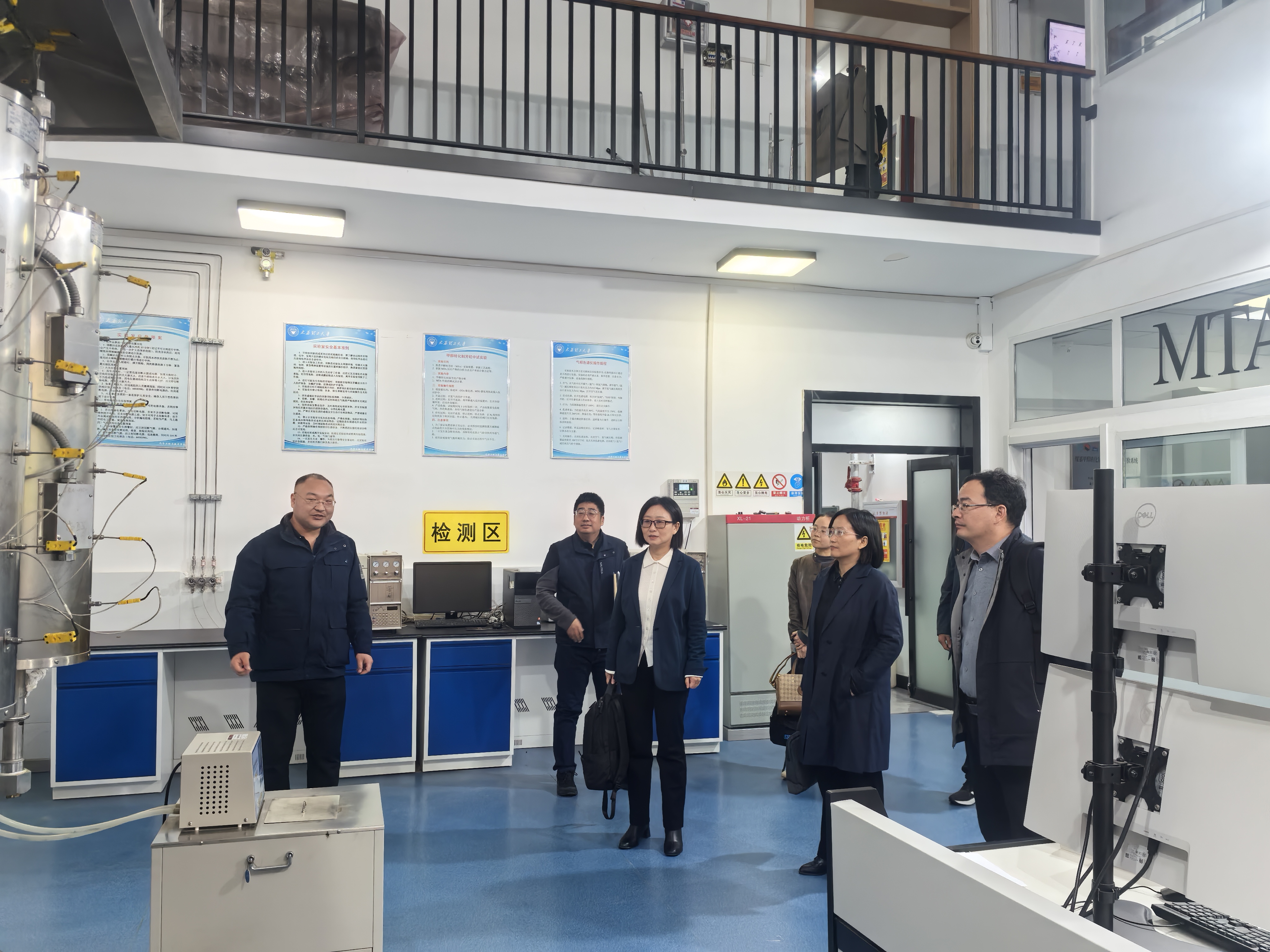 在太原理工大学化学与化工学院,学院一行与张琤书记、吴旭院长等班子成员进行了座谈交流。座谈会上,太原理工大学化学与化工学院院长吴旭详细介绍了学院在化学工程与技术双一流学科建设的特色做法,重点分享了其在人才队伍引培、科教融汇育人、国家级平台建设以及高效能治理方面的成功经验。双方围绕基层党建、专业建设、科技创新、团队建设、学生工作等展开深入交流。学院一行认真听取经验介绍,并就学院在材料与化工专业学位博士点申报、高层次人才引育、标志性成果培育等方面与对方进行了坦诚沟通。会后,学院一行参观了太原理工大学化学化工基础实验山西省实验教学示范中心。