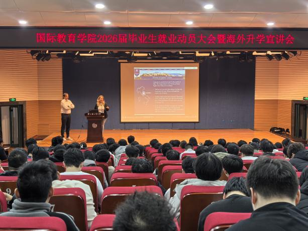 28日下午,Marco Quacquarini一行在国际教育学院毕业生就业大会上详细介绍了卡梅里诺大学硕士课程的学科优势及申请政策,吸引了百余名学生参与咨询。会后,代表团为中意合作办学食品科学与工程专业2024级学生颁发了卡梅里诺大学学生证,标志着合作办学项目学生同步获得两校学籍。