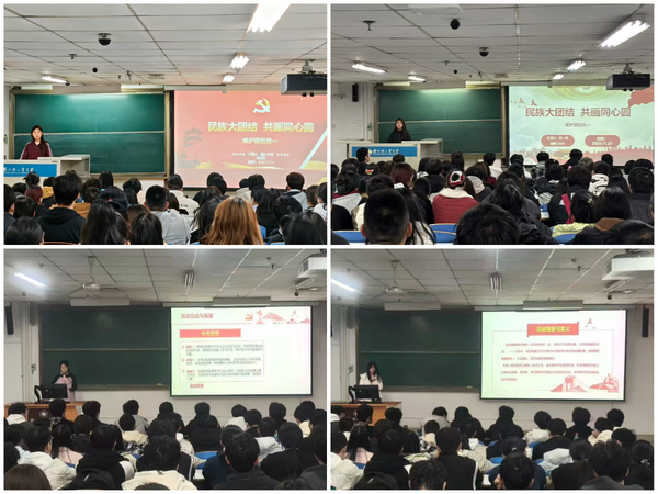 活动伊始,各班团支书以精心制作的PPT为载体,带领同学们系统学习了我国民族政策的发展历程,重点解读了民族团结在国家发展、社会进步中的关键作用。从秦汉“大一统”下的民族交融,到隋唐“胡汉一家”的文化包容,再到新时代“全国各族人民像石榴籽一样紧紧抱在一起”的生动实践,清晰勾勒出中华民族共同体的形成脉络。同时,各团支书重点解读了“民族团结宝鼎”的厚重寓意,讲述“草原额吉”都贵玛抚养孤儿、“援藏干部”孔繁森扎根雪域等感人事迹,让同学们真切体会民族团结的精神内核。随后,各支部组织观看《同心共筑中国梦》主题短片,通过鲜活的人物故事与发展成就,直观呈现各民族在文化交融、社会发展中的生动实践。最后,同学们围绕“新时代青年如何守护民族团结”这一话题展开了热烈讨论,纷纷表示要主动学习民族政策,尊重不同民族习俗,在日常交往中传递团结温情,以实际行动铸牢中华民族共同体意识。