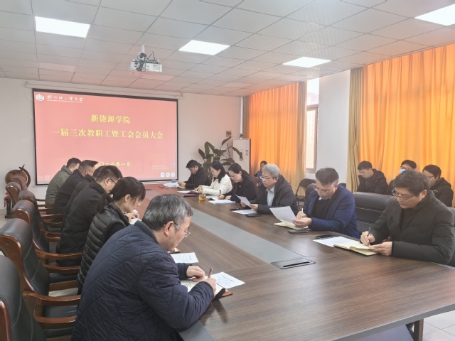 1月8日下午,新能源学院一届三次教职工暨工会会员大会在315会议室举行。全院教职工参加会议,院党委书记孙琳主持会议。