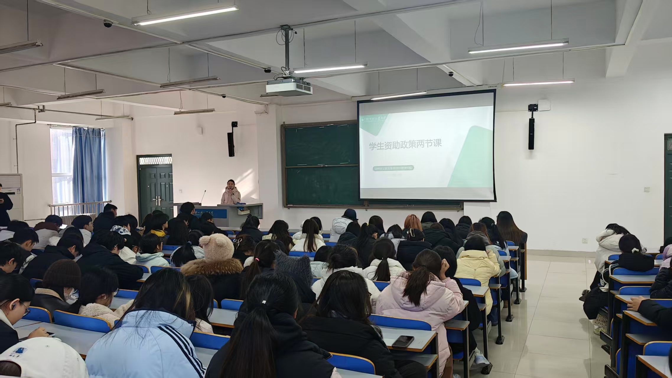 为深入贯彻落实国家高校资助政策,切实加大政策宣传力度,保障家庭经济困难学生顺利完成学业,经济与管理学院于2026年1月8日至9日,在经管楼309教室分批次召开国家资助政策“两节课”宣讲会。由学院资助专项老师带领学生资助宣传大使担任主讲人,2023级、2024级本科学生积极到场参会。