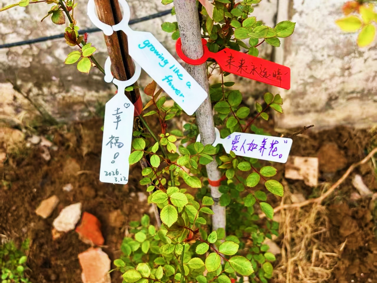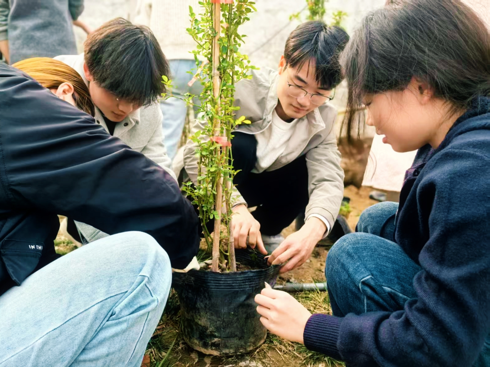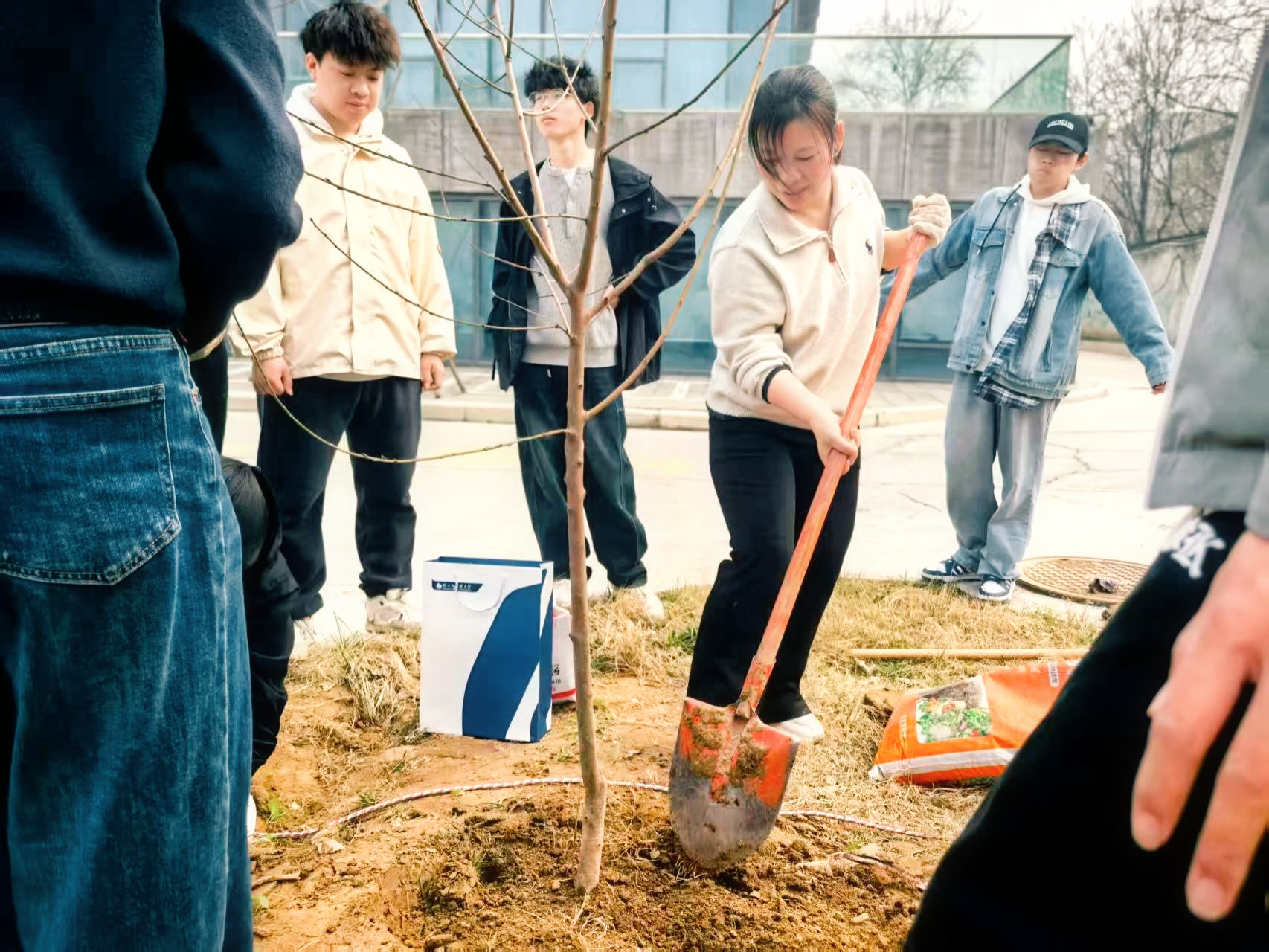 历经两个半小时,所有树苗均栽种完毕。新苗沿墙而立,错落有致,不仅美化了校园环境,更承载着同学们对绿色未来的期待。本次活动将植树活动、劳动锻炼与心理健康教育、团队建设相结合,让同学们在出力流汗中体验耕种愉悦,感悟成长责任,增强了对未来苗木养护与个人成长的期待和信心。