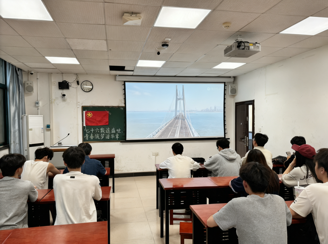 活动中,各班团支部围绕党史、新中国史展开深入学习,通过讲述革命先辈的奋斗故事、分享新时代国家发展的辉煌成就,深刻感悟祖国的风雨征程与伟大变迁。支部同学还通过集体观看《长津湖》、《觉醒年代》等经典爱国影片,在光影中重温峥嵘岁月,感受革命先烈的家国情怀与使命担当。此外,“我与国旗合个影”、“绘山河锦绣,贺祖国华诞”等主题活动同步开展,同学们或手持国旗定格对祖国的热爱;或以笔墨寄情,抒发炽热的爱国热忱,传递对祖国的美好祝福。
