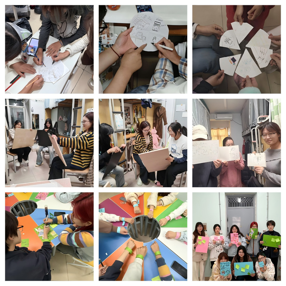 本次活动主要通过“认知-体验-实践”三维路径,帮助新生适应全新的集体生活环境,掌握“倾听-表达-共情”的人际沟通技巧。活动中,同学们用绘画、手账、剪纸等熟悉的艺术形式,进行画匣子、情绪交换盲盒、集体曼陀罗、心情气象站等多种心理体验活动,让自我展示成为一次小型创作实践,使新生在展现特质的同时收获成就感,进而建立自信。同学们不仅缓解了当下的压力,又让他们意识到,自身的专业技能既能用于作品创作,又能成为调节情绪、搭建人际桥梁的工具。