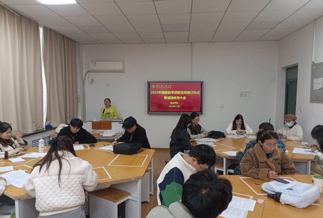为进一步增强学生诚信意识,加强感恩教育,落实好国家助学贷款相关政策,政法学院于11月6日中午在学院100教室举办了2025年国家助学贷款合同签订仪式暨诚信教育大会,学院资助工作专项负责老师及校园地助学贷款本科生、研究生参加。