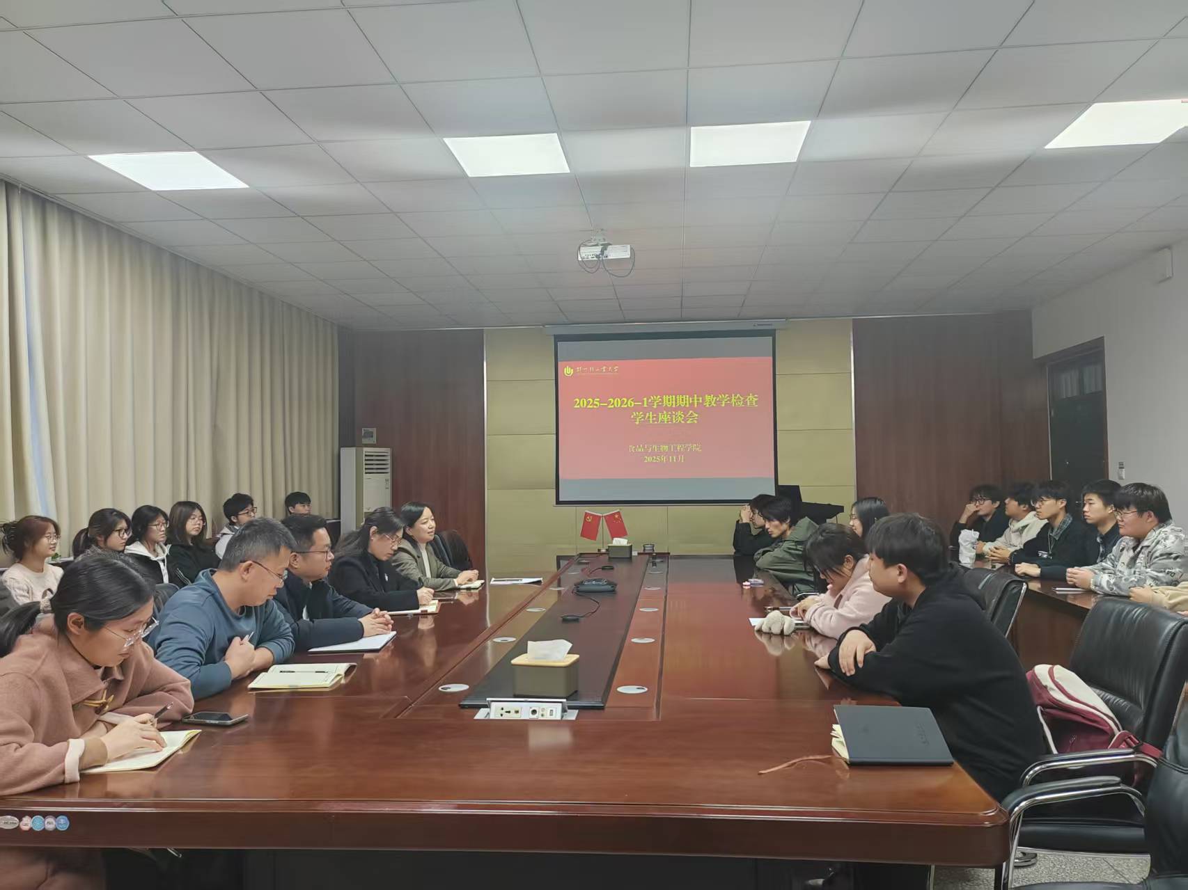 为全面了解教学运行情况,进一步提升人才培养质量,11月10日、13日,食品与生物工程学院在食工楼211会议室召开期中教学检查教师及学生座谈会,学院领导班子、各系主任、教学督导组成员、教师及学生代表参加会议,会议由副院长陶静主持。