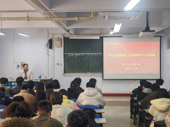 为深入学习领会党的二十届四中全会精神,号召广大青年凝心聚力、奋发进取,12月16日,电气信息工程学院在西五楼401开展学习贯彻党的二十届三中全会精神主题宣讲。校青年讲师团成员、学院团委书记廉琼主讲,学院团学组织成员、青马班成员参加学习。