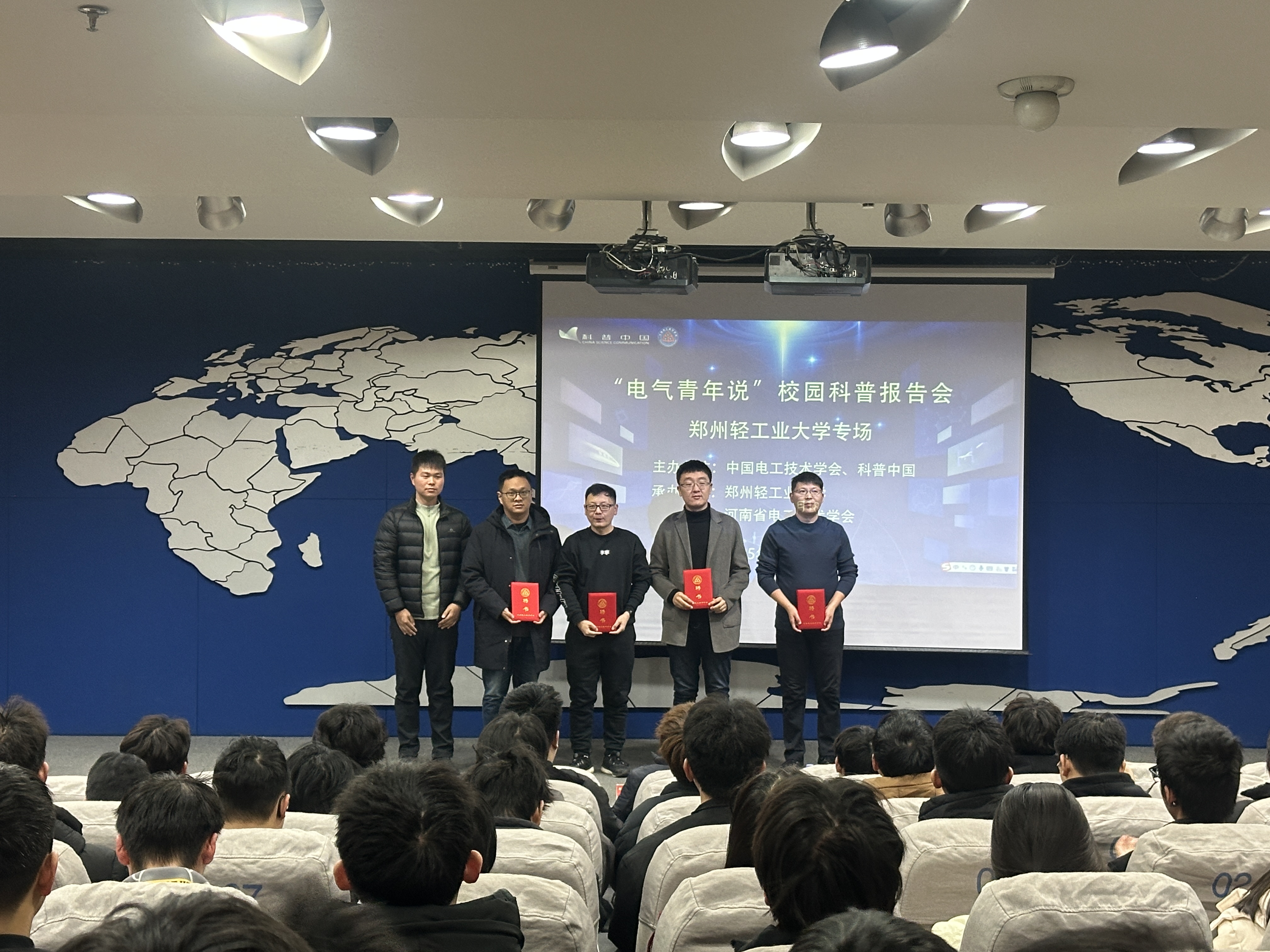 2025年12月18日,由中国电工技术学会与科普中国主办,郑州轻工业大学电气信息工程学院和河南省电工技术学会承办的“电气青年说”校园科普报告会在郑州轻工业大学东风路校区举行。本次活动旨在搭建高校青年学者与学子之间的交流平台,推动电工学科知识的普及与青年科技人才的成长。河南省电工技术学会副秘书长马鑫源、郑州轻工业大学电气信息工程学院党委副书记刘振卫、郑州大学电气与信息工程学院副教授葛国伟、河南科技大学信息工程学院讲师王楠、郑州轻工业大学电气信息工程学院副教授季玉琦、郭磊磊等专家及150余名师生参加会议。郑州轻工业大学电气信息工程学院副教授郭磊磊担任本次活动召集人并主持会议。