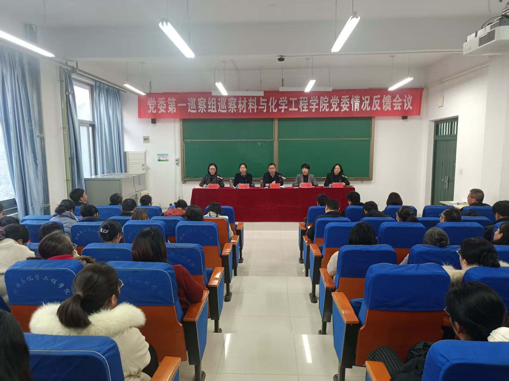 12月18日,校党委第一巡察组巡察材料与化学工程学院党委反馈会在化工楼218会议室召开。校党委第一巡察组成员、学院全体教职工及学生代表参加反馈会。会议由学院院长张晓静主持。