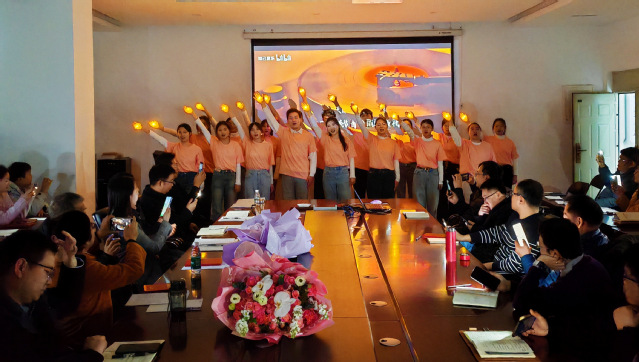 首先,院党委书记刘国豪、院长李浩分别为崔晓康教授、段红杰教授颁发了荣誉证书。学生代表向荣退的老师们献上鲜花。学院党政负责人、荣退教师所在系的系主任和学生代表共同合影留念。由辅导员张东旭、张泽宇领唱,20多名学生代表专门为老师们献唱了一曲《明天会更好》。在动人的歌曲旋律和点点星光的映衬下,同学们向老师们表达了深深的敬意。