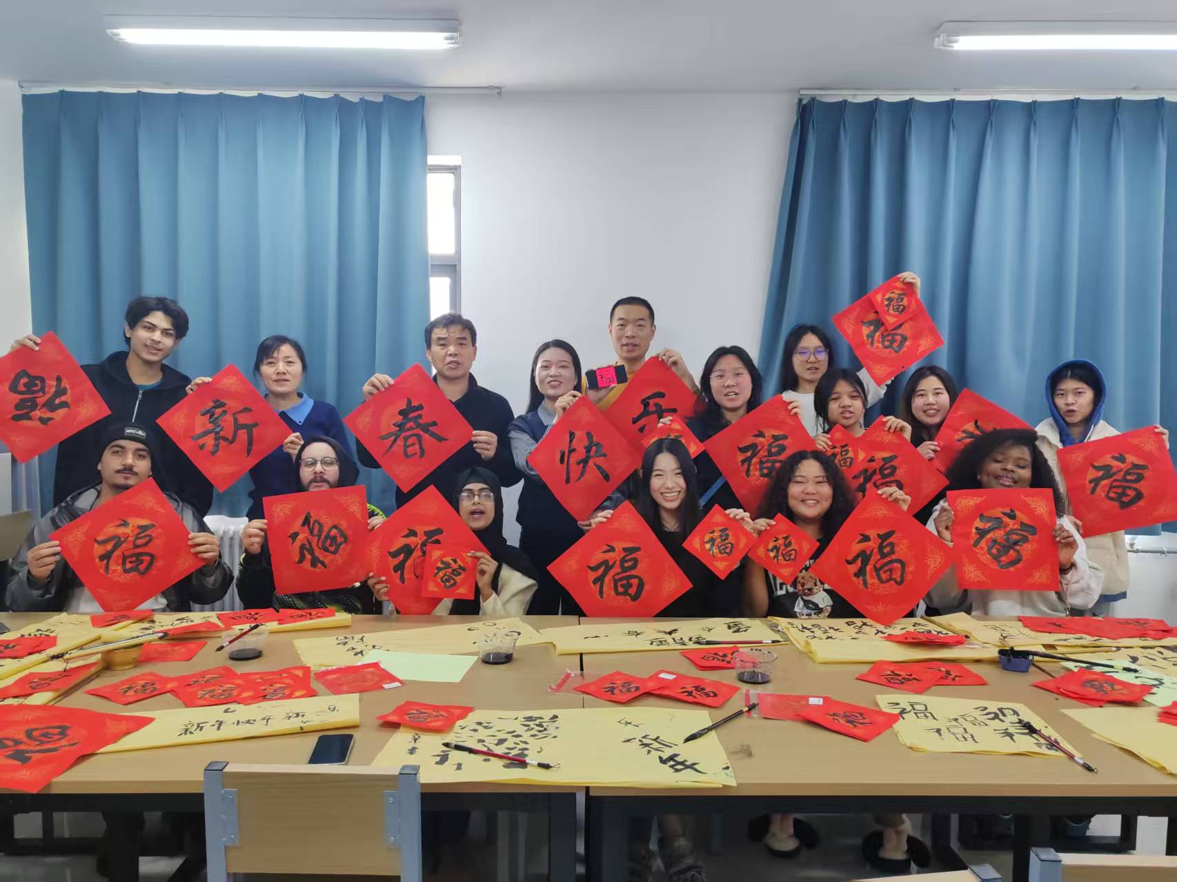 28日下午,国际教育学院党委副书记张智勤、副院长荆晓艳携学院教师代表,走进留学生宿舍,与来华留学生共同开展“写‘福’字、品年味、悟文化”主题文化体验活动。