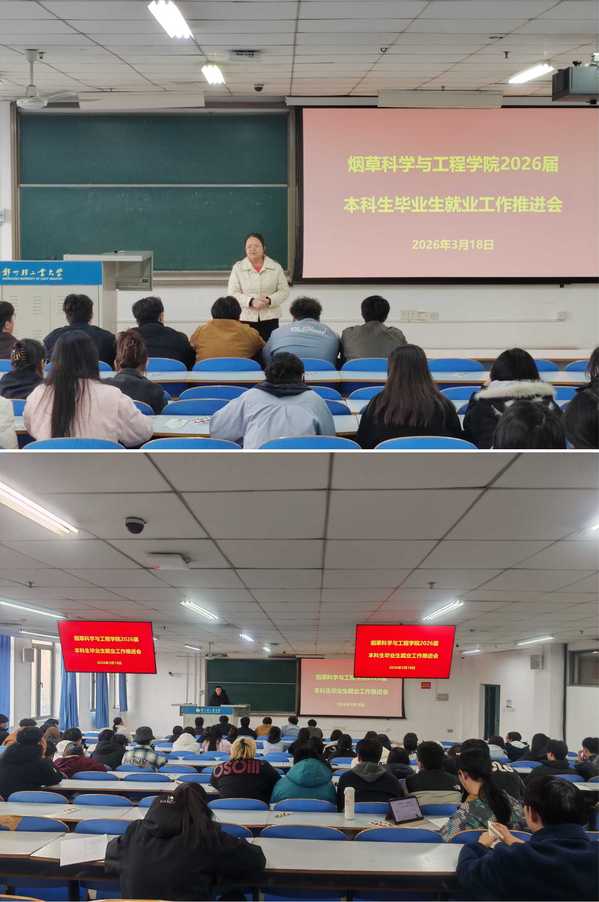 为扎实做好学院本科生就业工作,助力毕业生实现高质量就业,3月18日,烟草科学与工程学院在三教楼召开2026届本科毕业生就业工作推进会,学院党委副书记张宏英、就业专职老师、毕业班辅导员及2026届本科毕业生参加会议。
