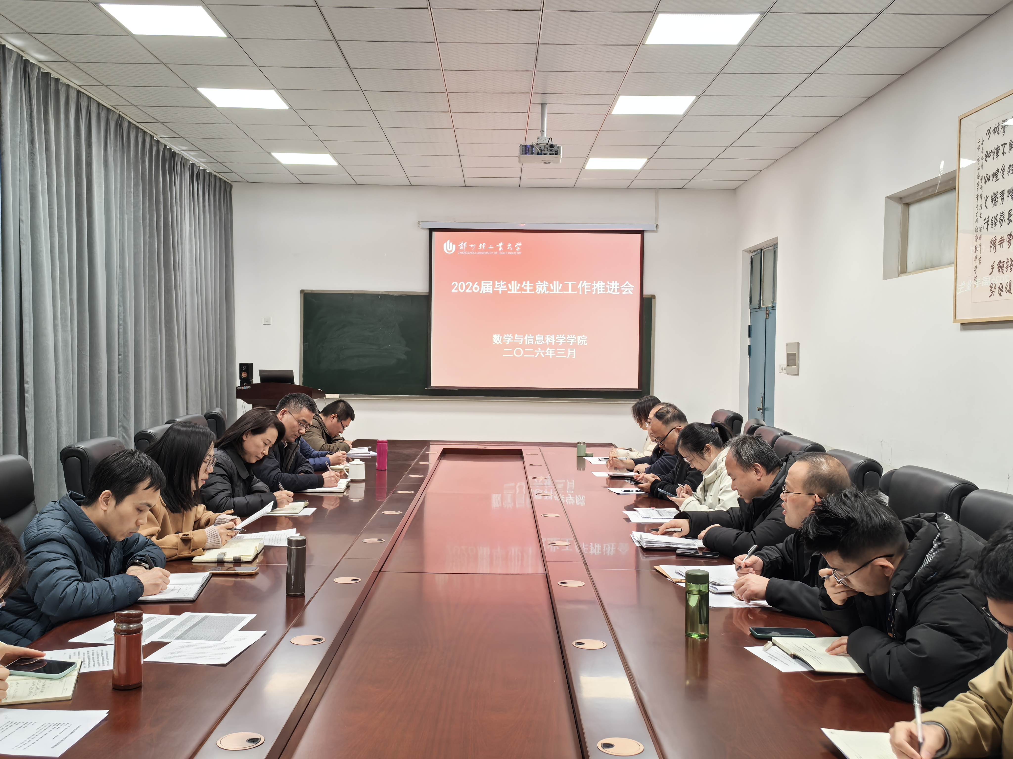 为深入分析当前就业形势,扎实推进2026届毕业生就业工作,3月19日下午,数学与信息科学学院在东一楼310会议室召开2026届毕业生就业工作推进会。学院领导班子成员、科级干部、毕业班班主任、全体辅导员参会,会议由学院党委副书记郑琦主持。