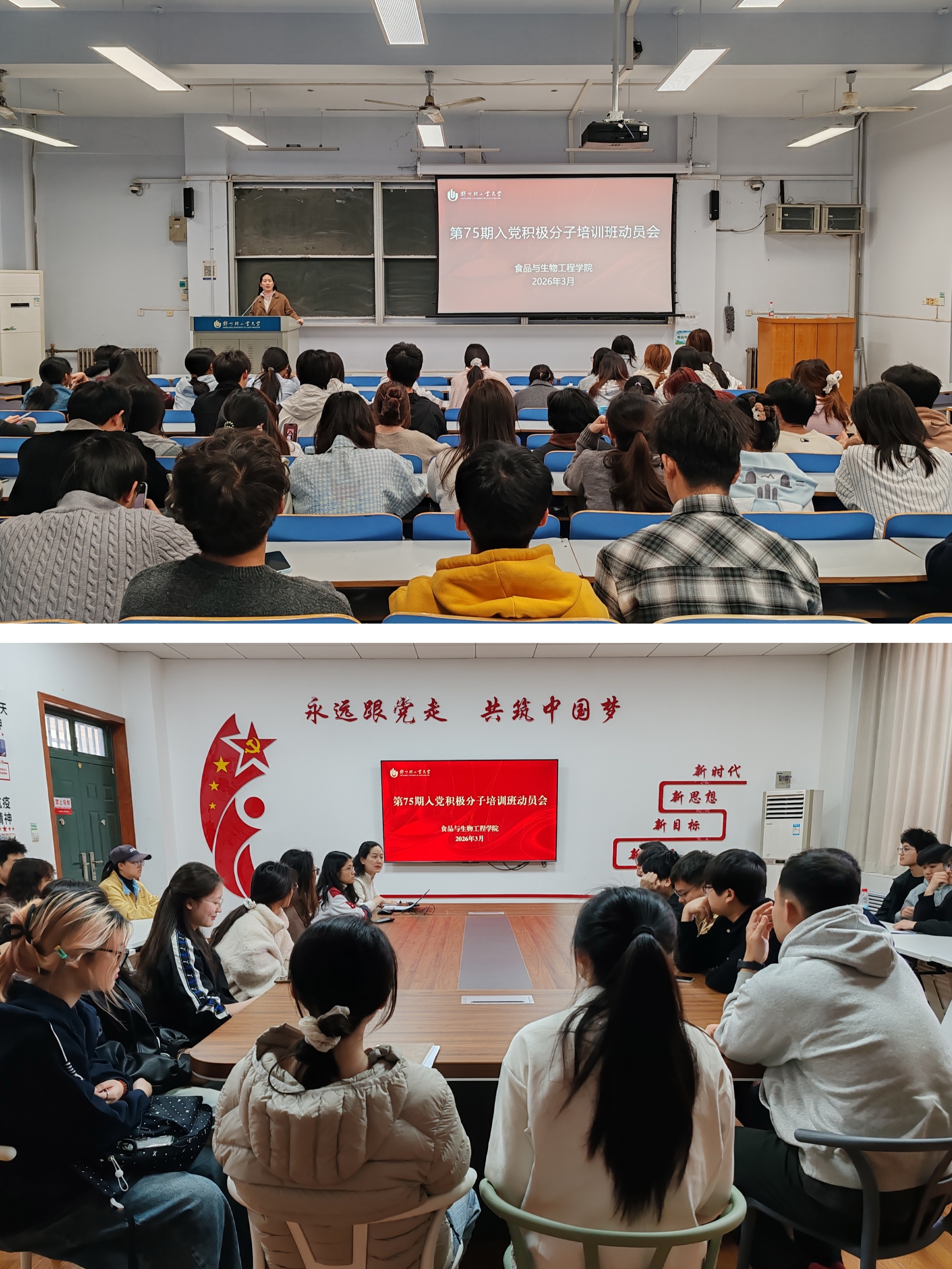 3月25日,食品与生物工程学院在科学、东风两校区分批次举行第75期入党积极分子培训动员大会,学院组织员雷瑞泽老师及培训班全体学员参加本次会议。